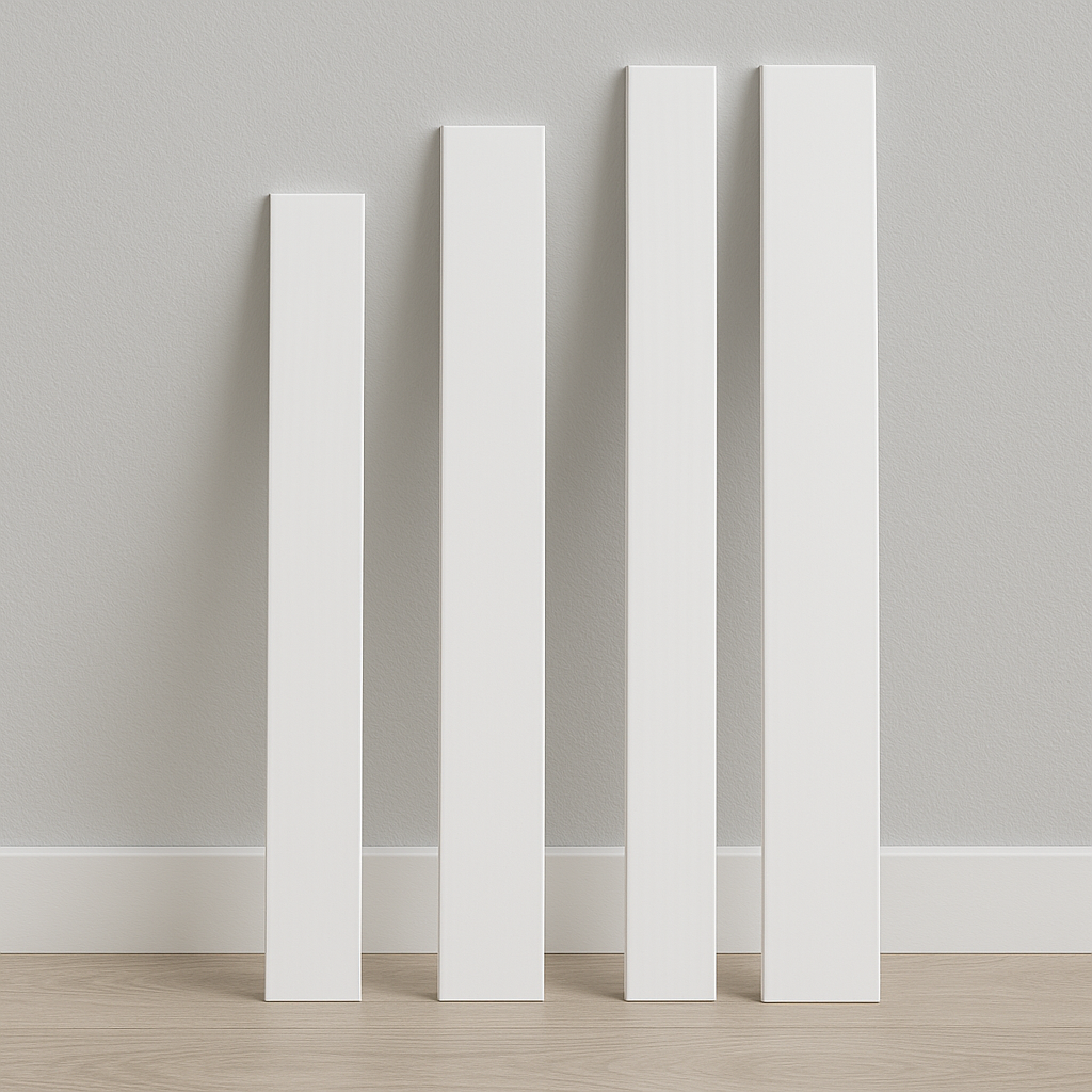 Listello di copertura piatto per una lavorazione facile ed efficace. Il lato inferiore è scanalato per evitare la fuoriuscita del collante.