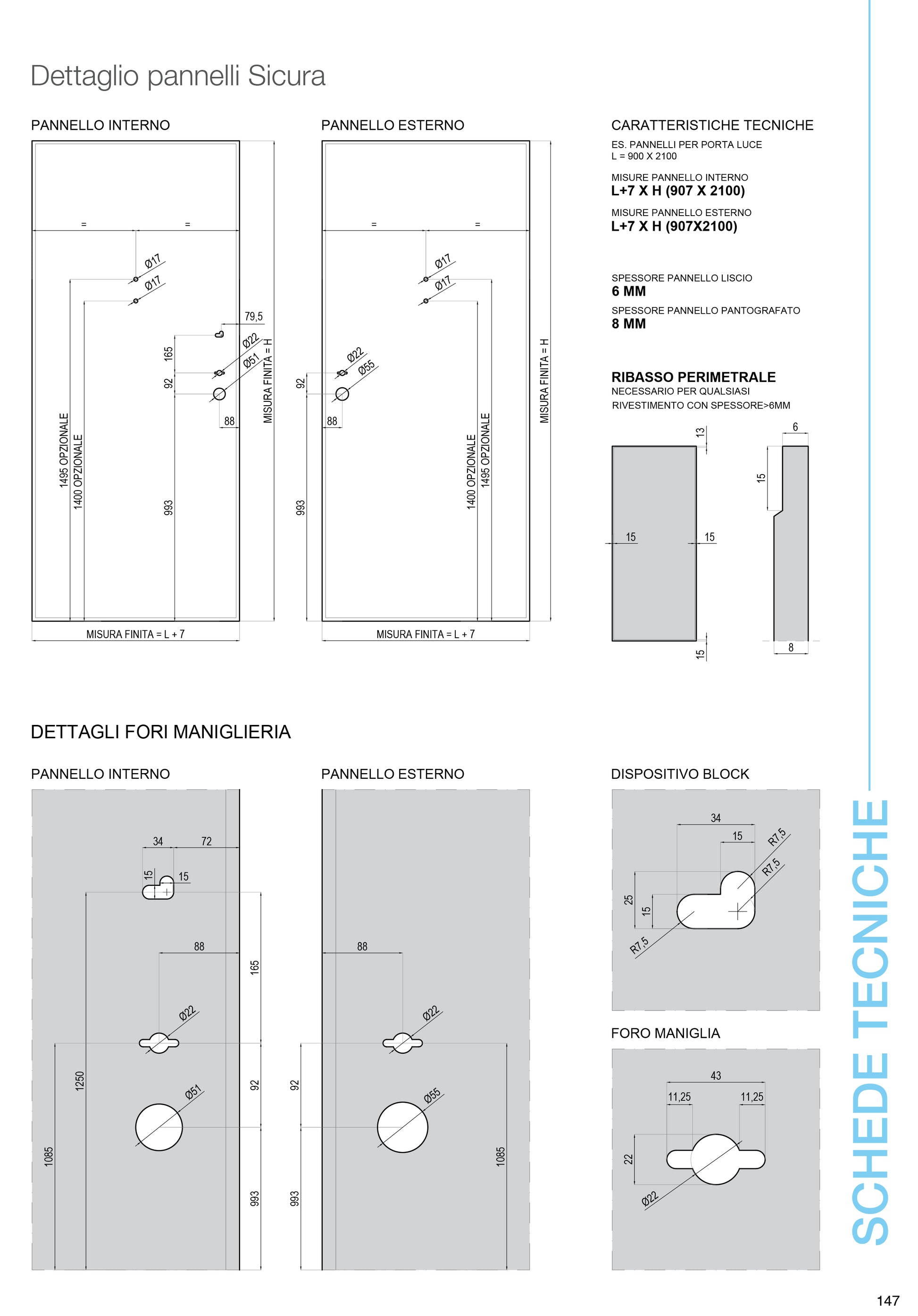- estetica personalizzata: sarà possibile scegliere non solo il design del pannello di rivestimento esterno e interno del blindato ma anche la maniglia in modo da armonizzare il progetto d’arredo seguendo lo stile delle porte interne.