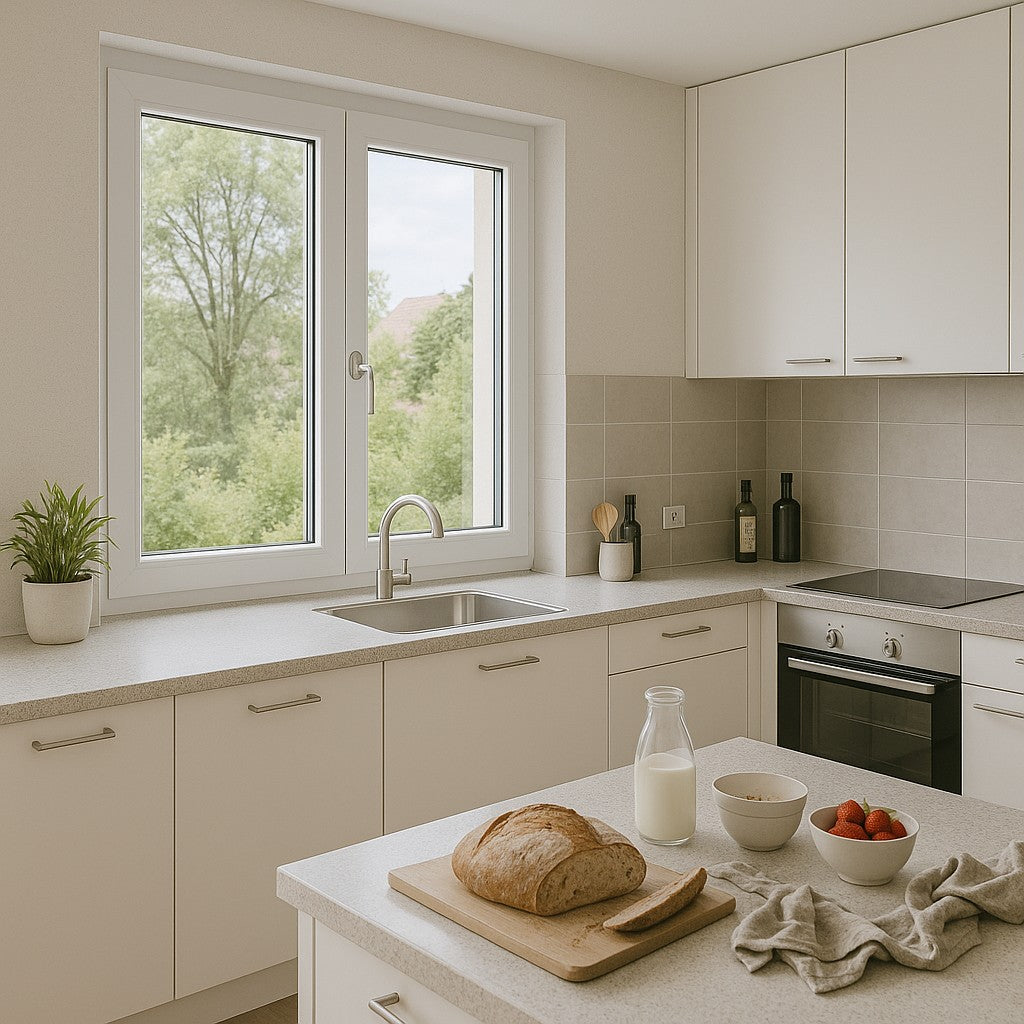 Portafinestra in PVC bianca a 2 ante con apertura a vasistas/ribalta, perfetta per ristrutturazioni e nuove costruzioni.