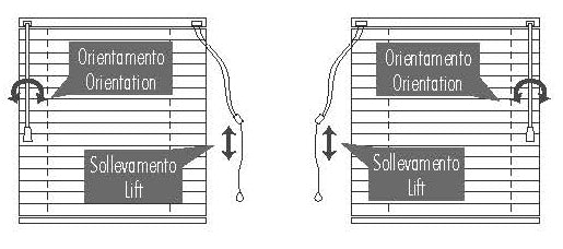Le veneziane sono dotate di comando con asta e corda, che consente di orientare
